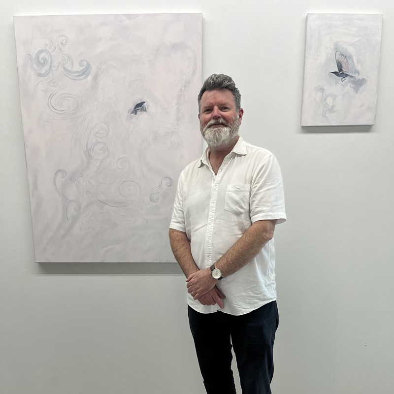 Hear about the artist's intricate process and how he achieves his delicately layered paintings, while getting up close and personal with his new series.