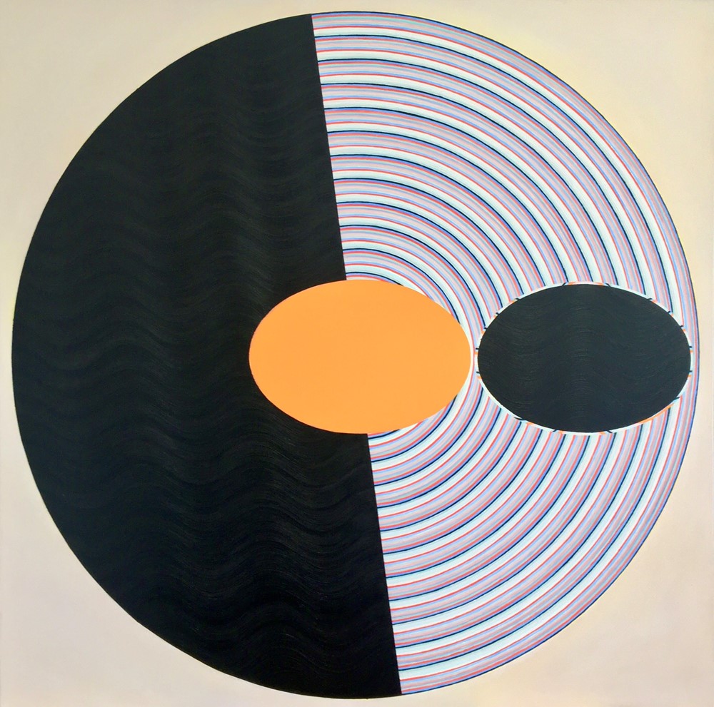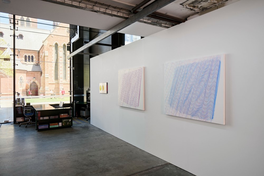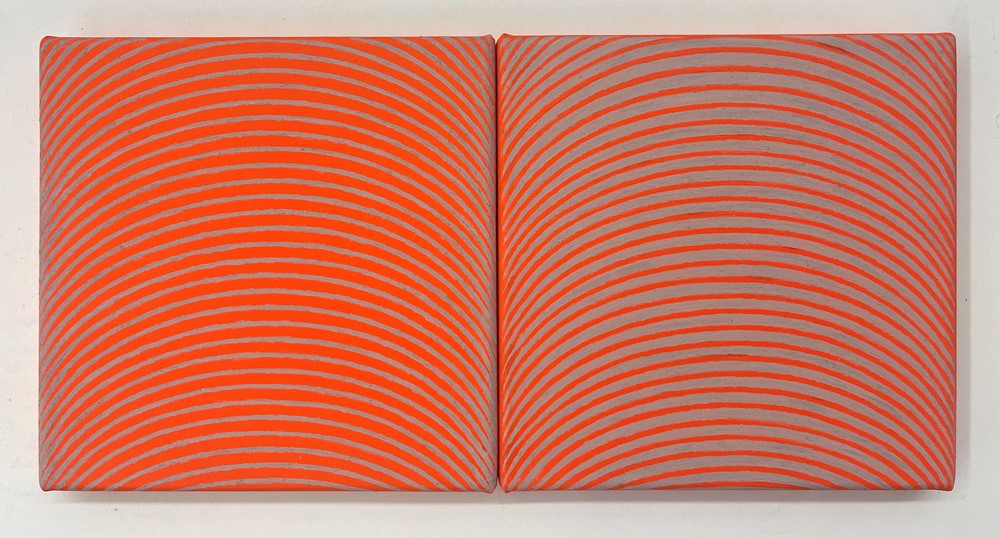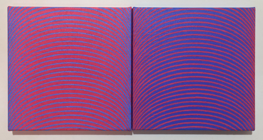 Helen Smith’s new 'Arc Drawings' explore how light, colour and movement can shift the way we see. Inspired by oscillations in physics, arcs of colour travel across a grid, gently unsettling the flat surface and creating moments of visual play. Optical illusions invite viewers to look closely, as the works seem to move or change depending on where you stand. This real or imagined sense of shifting perception creates a lively back‑and‑forth between different ways of seeing.