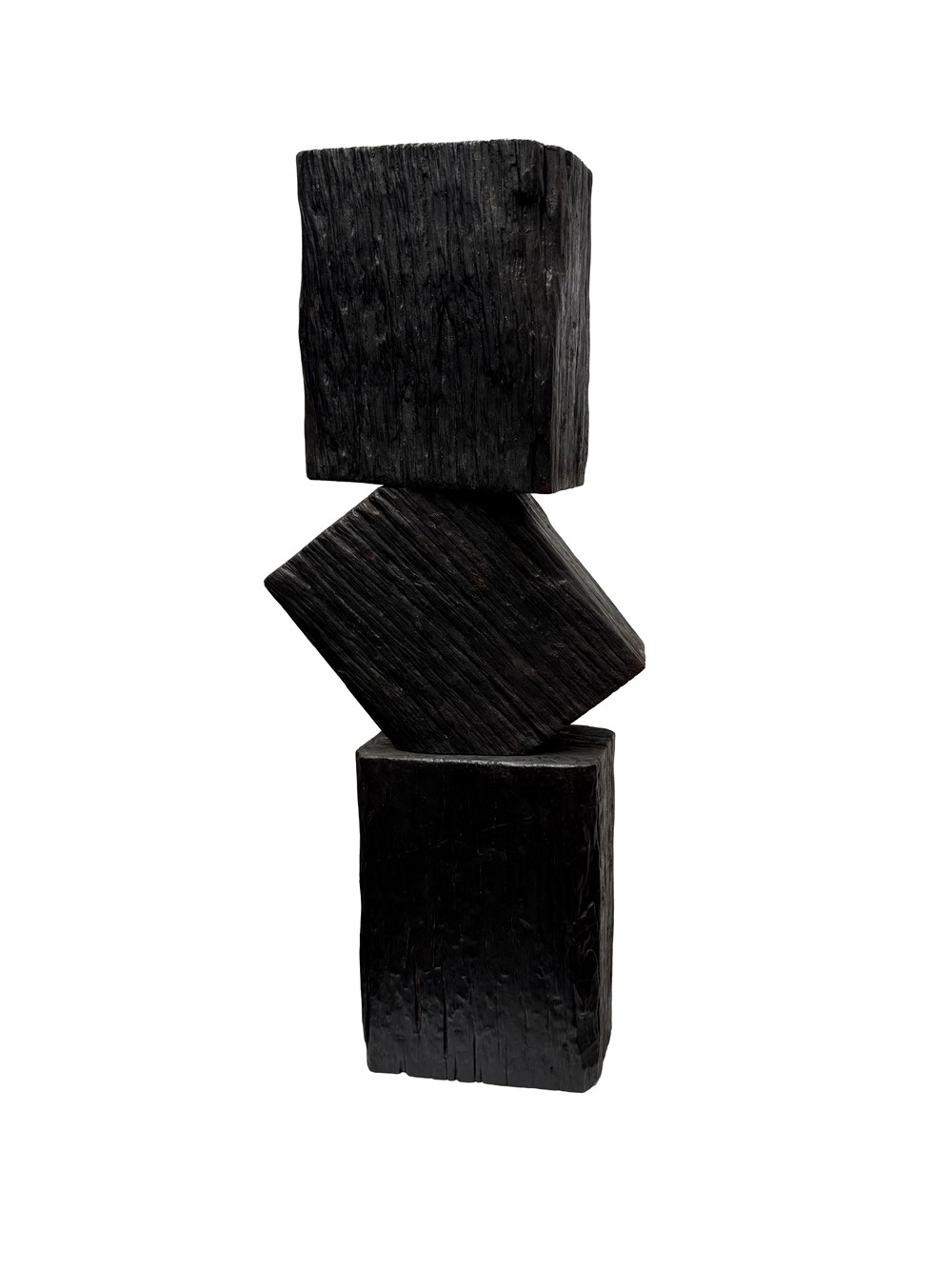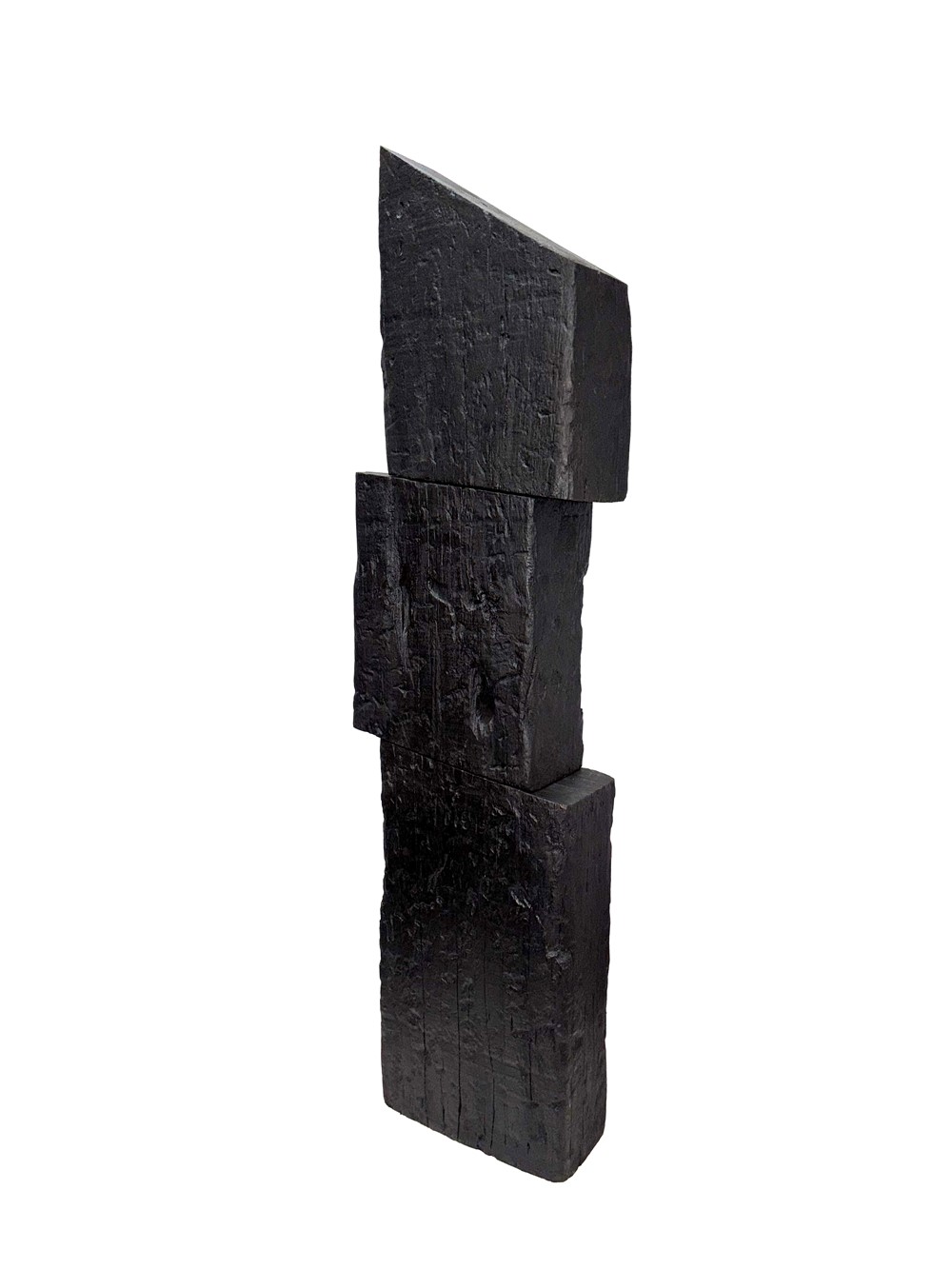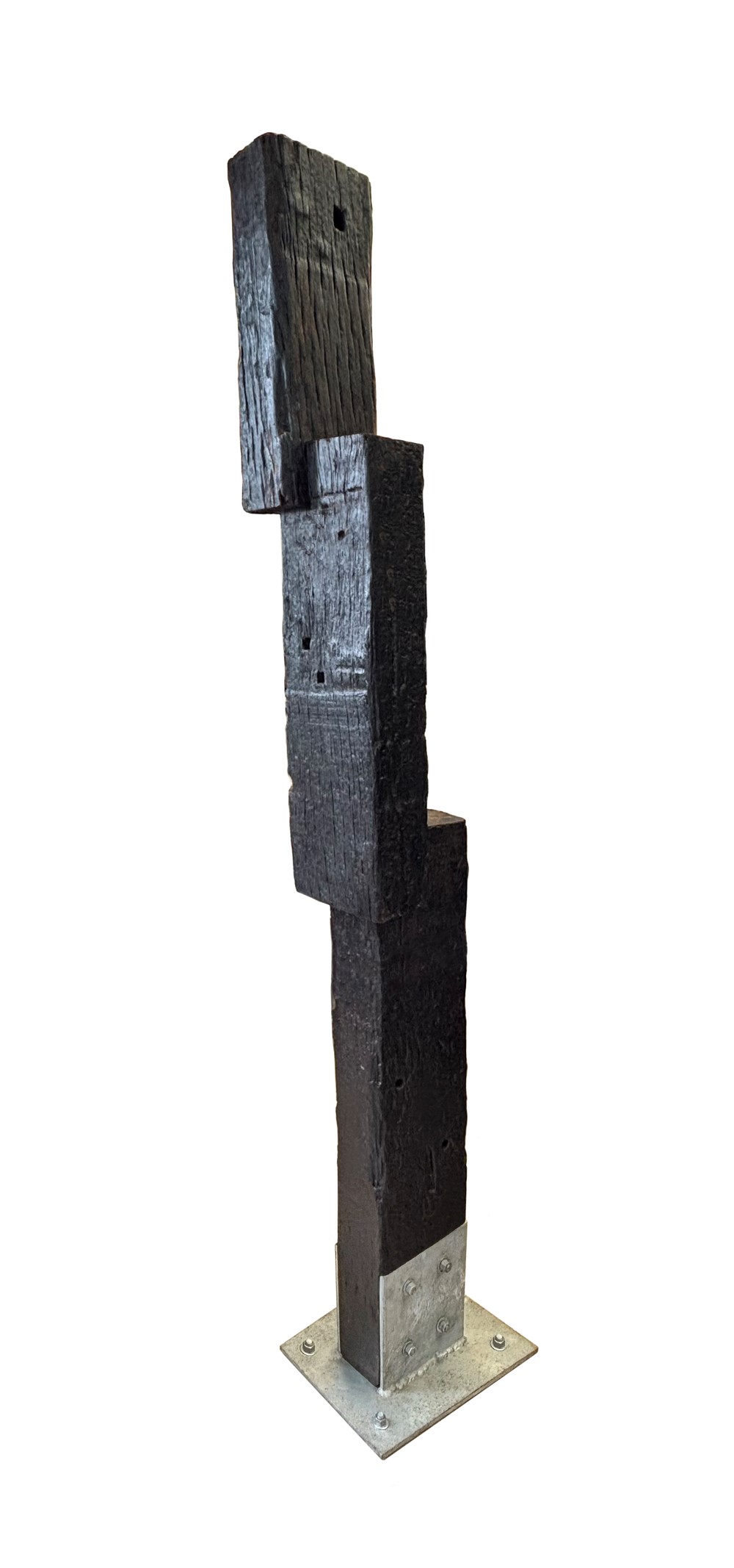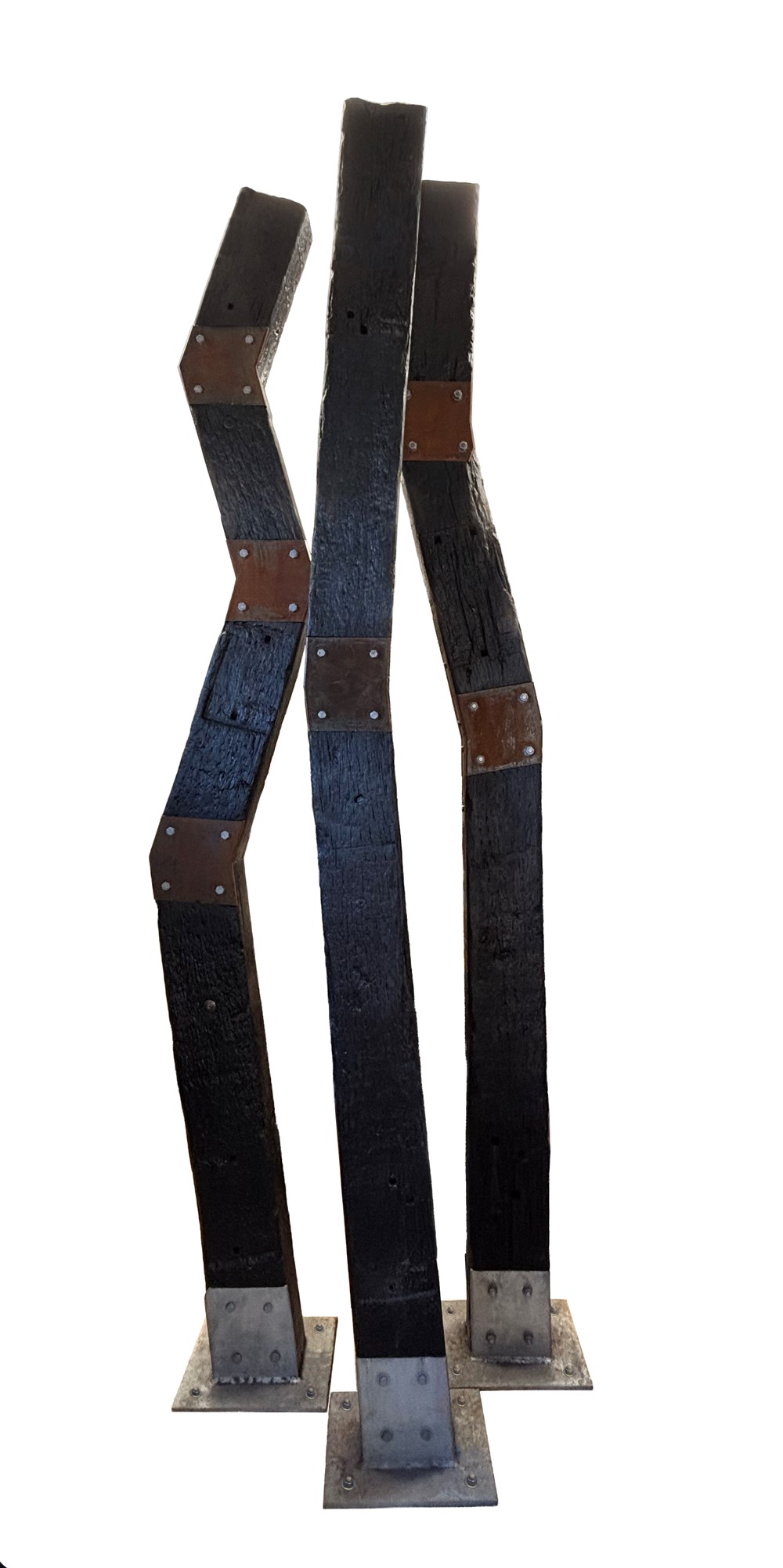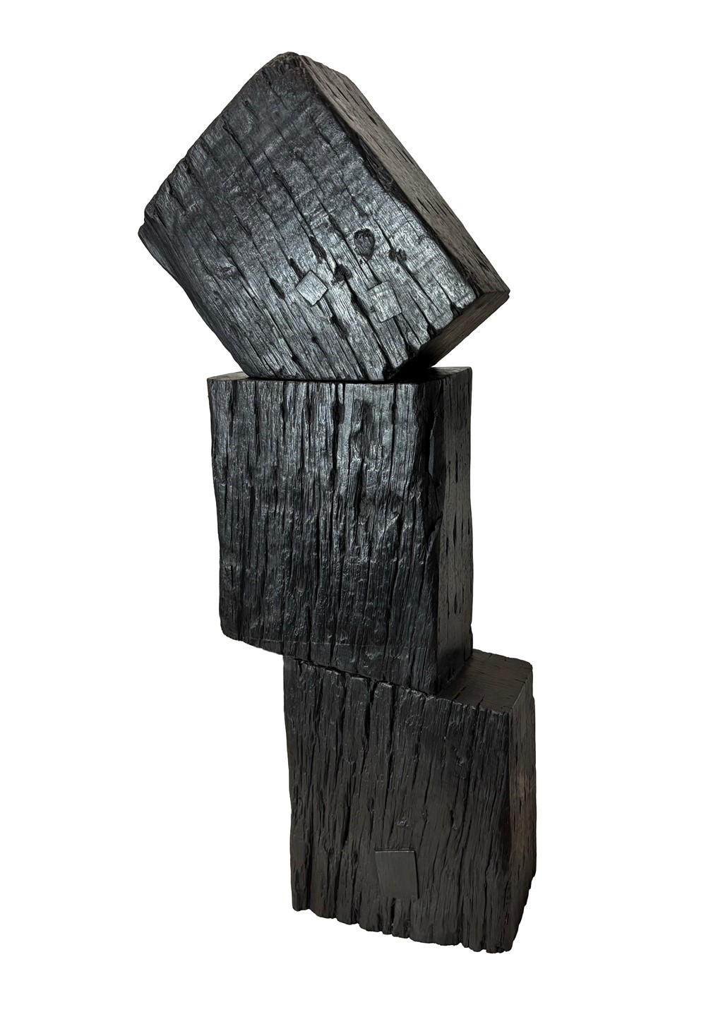 Working with reclaimed railway sleepers, she continues to test the limits of scale and structure, embracing processes that demand strength, precision and persistence. The push into new techniques carries its own unease as each work challenges what can be achieved through the weight and resistance of the material.