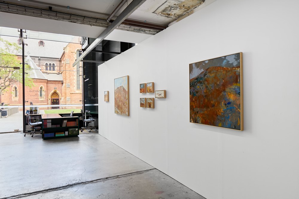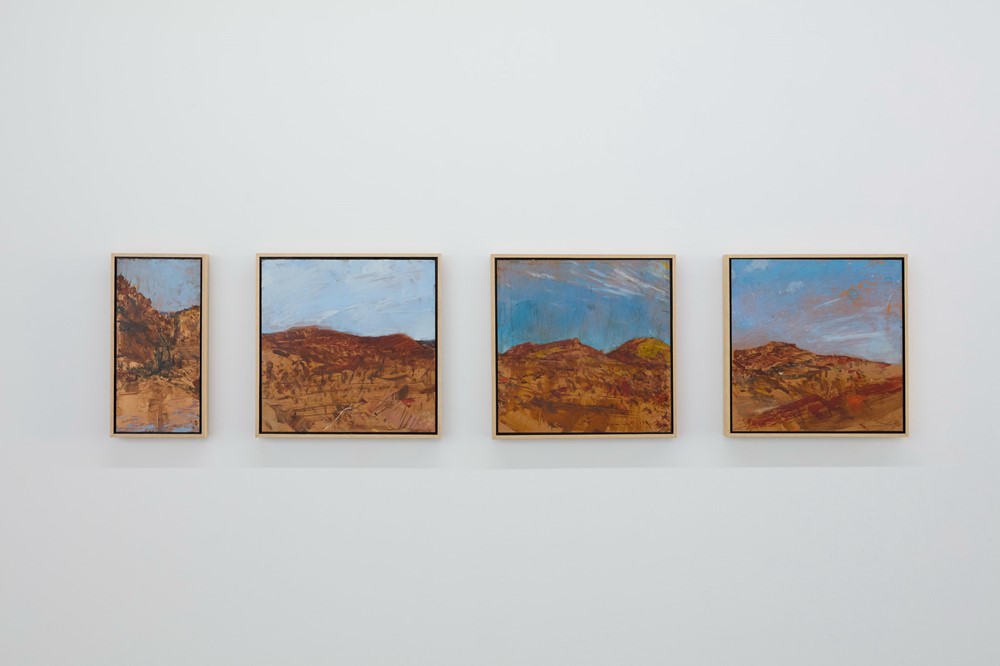 Merrick Belyea’s new Pilbara series is a meditation on the parallel mythologies that help make sense of human presence in a landscape that reveals its origins through exposed ores and worn‑down strata.