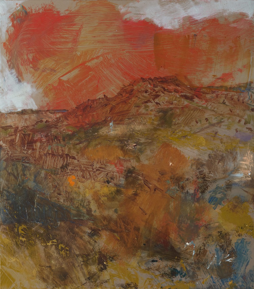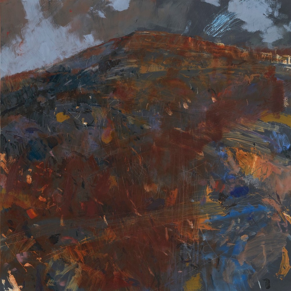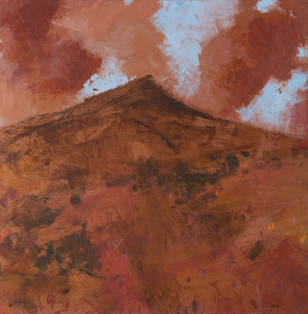 Merrick Belyea, Mount Nameless View, South West, 2025, oil on aluminium, 100 x 100cm